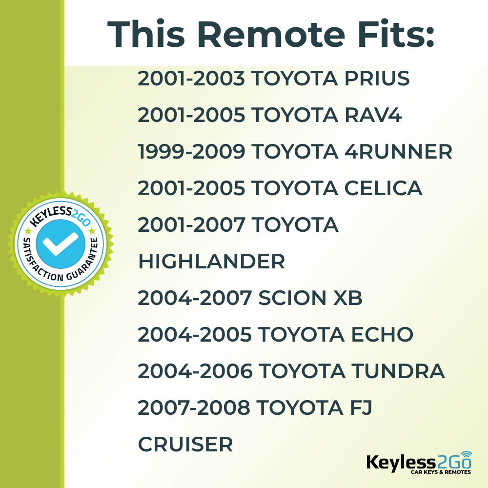 Keyless2Go 1999 - 2009 Toyota 3-Button Replacement Keyless Entry Remote Key Fob